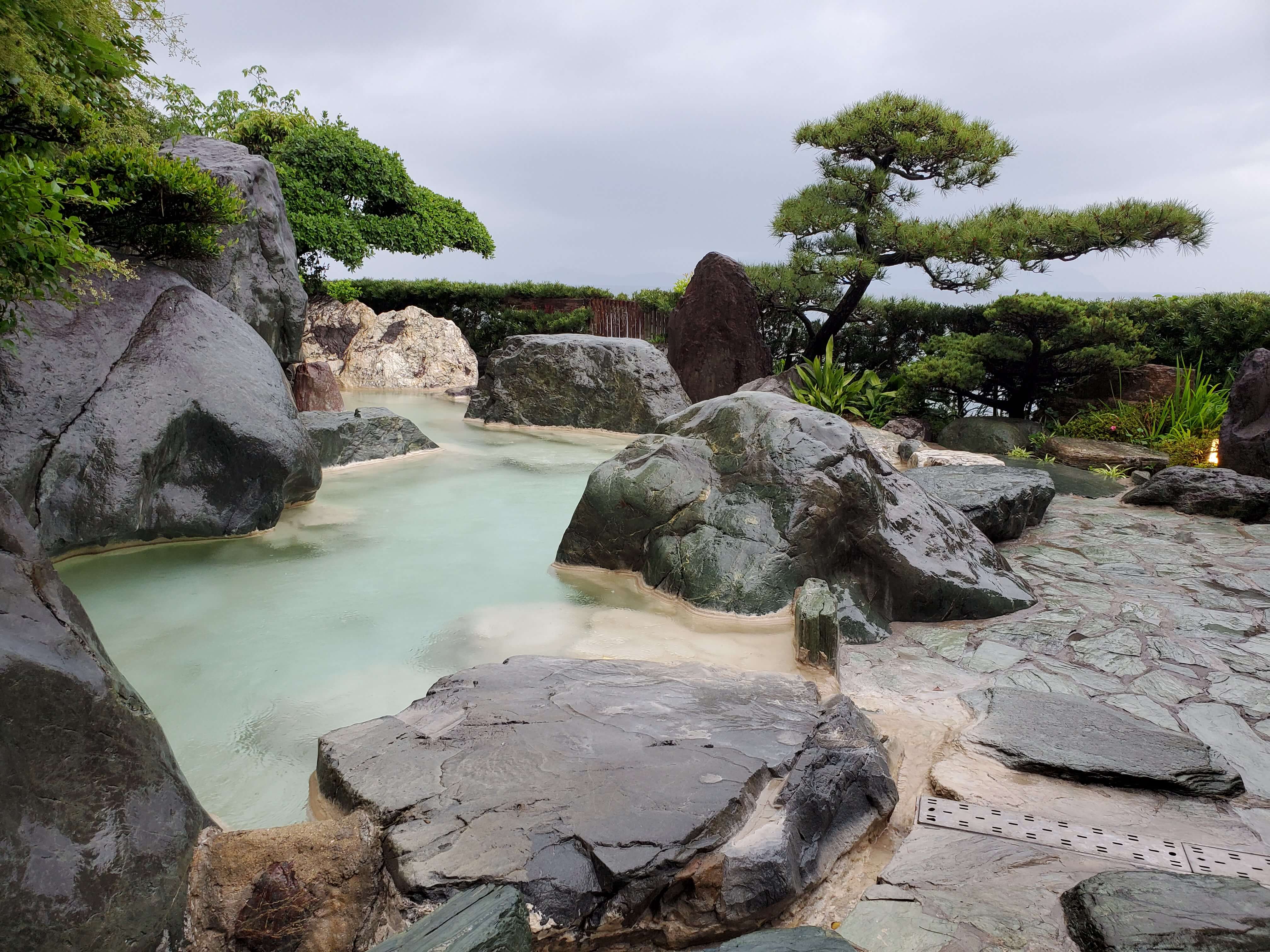 The weather wasn’t great on the day I visited so the photo doesn’t do it justice β but yes, you can also see the ocean from the open-air bath. (^-^)