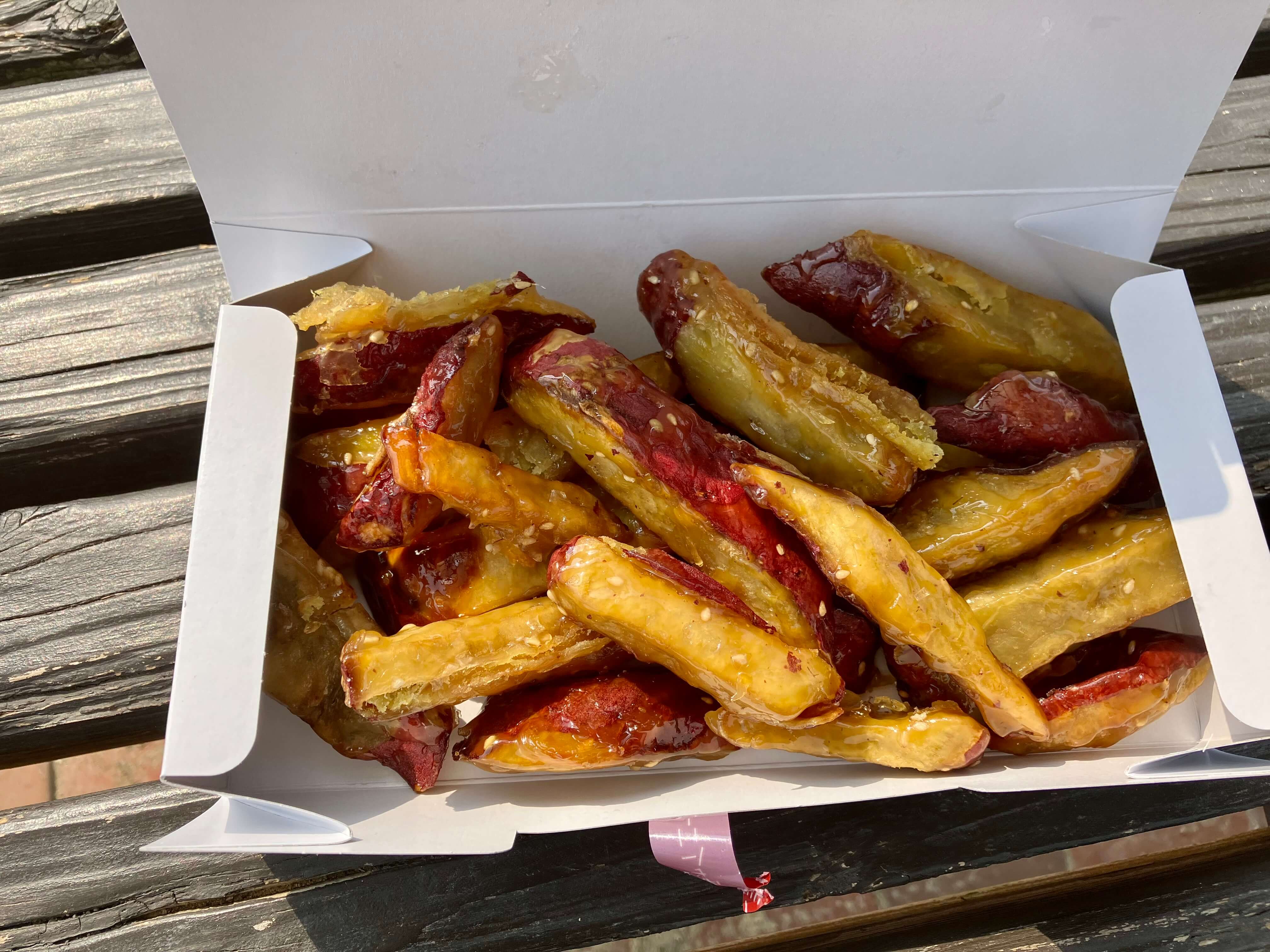 “Imo-ame” isn’t a term you hear often, but it’s essentially the same as “daigaku-imo” (a classic Japanese candied sweet potato dish, literally “university potato”).