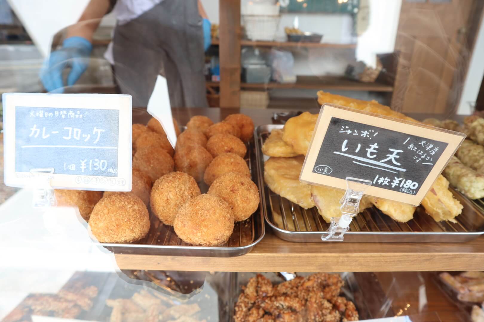 Sold by weight: Tori-ten (Japanese-style chicken tempura) ¥270 per 100g (about 3.4 pieces)