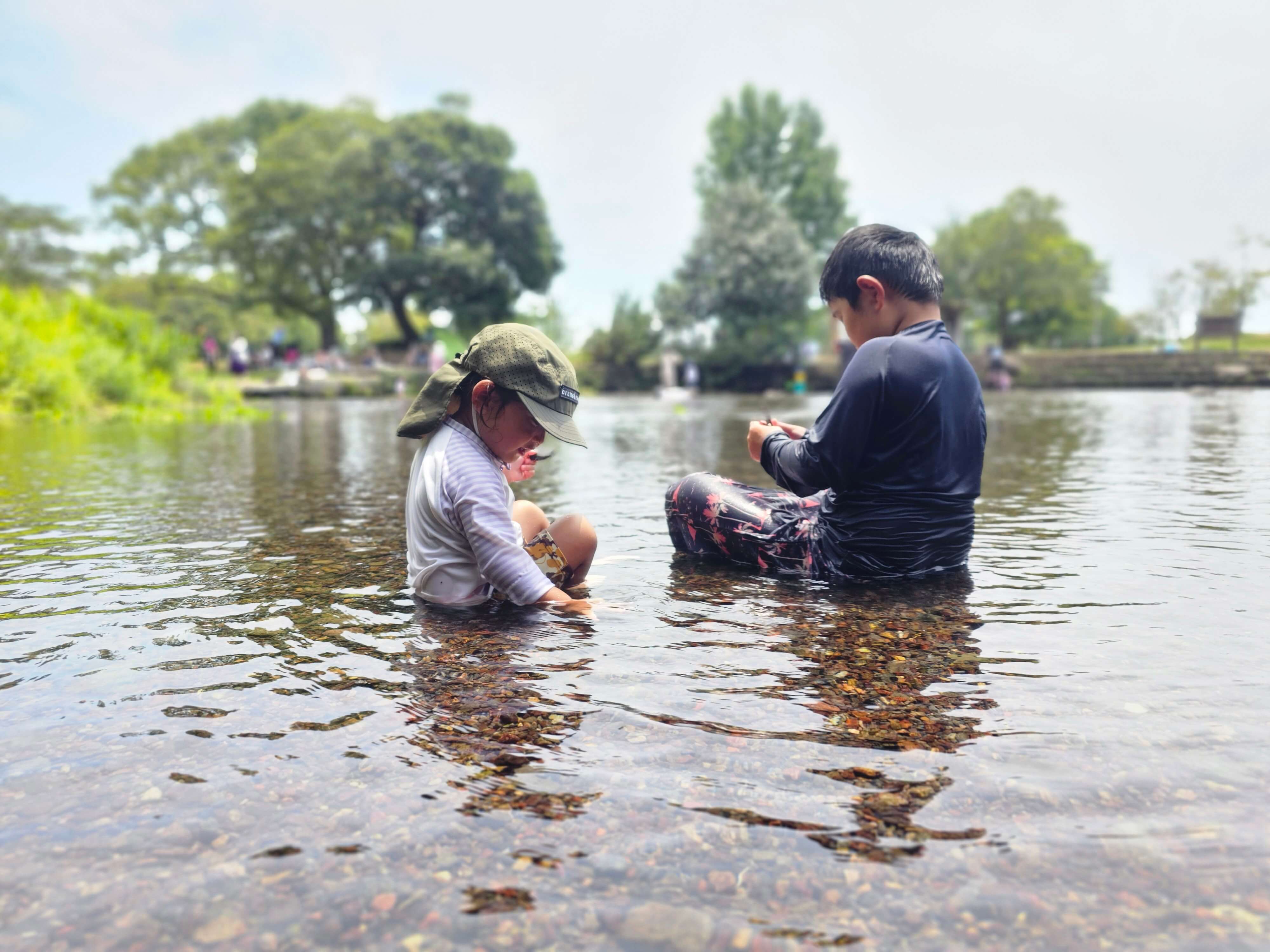 Kumamoto summers show no sign of cooling down — so come find your cool, explore the nature, and let the whole family play in the spring water at じゃぶじゃぶ池.