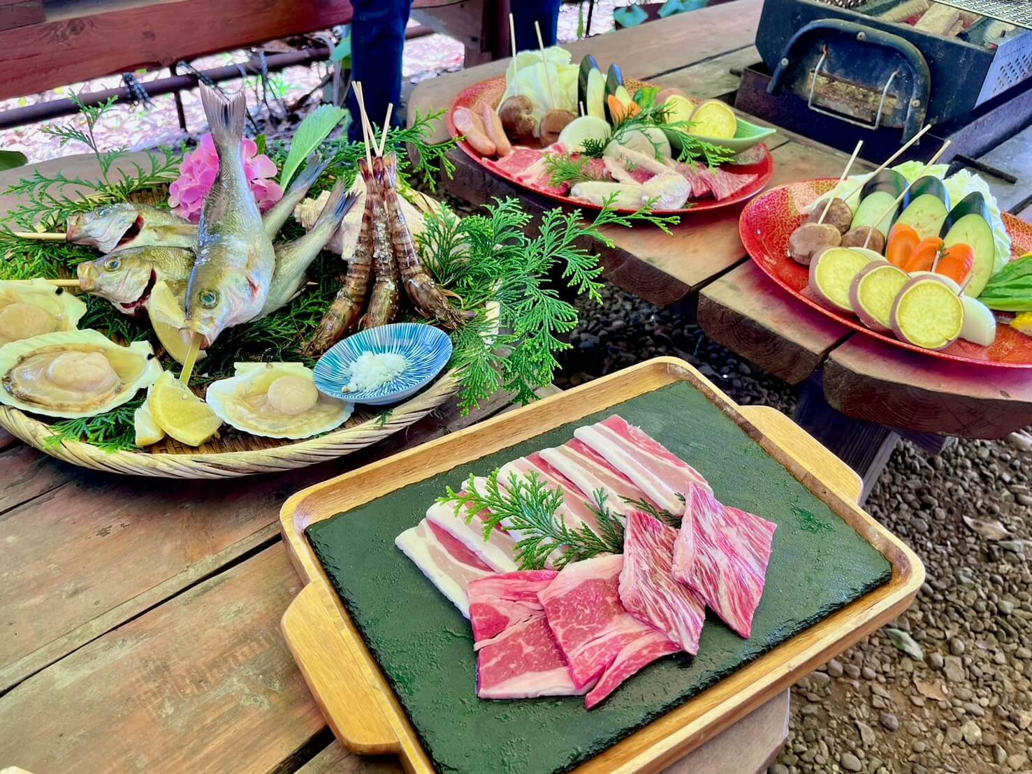 Golden, sizzling char marks on everything. The smell alone is enough to make you forget you’re on a hilltop in rural Kumamoto.