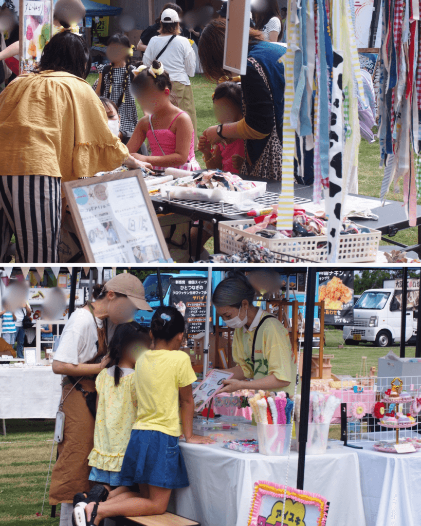 ハンドメイドアクセサリーの他にも、キッズメイクやネイル、木のおもちゃなど、子どもたちが楽しめるお店にたくさん出店していただきました。
