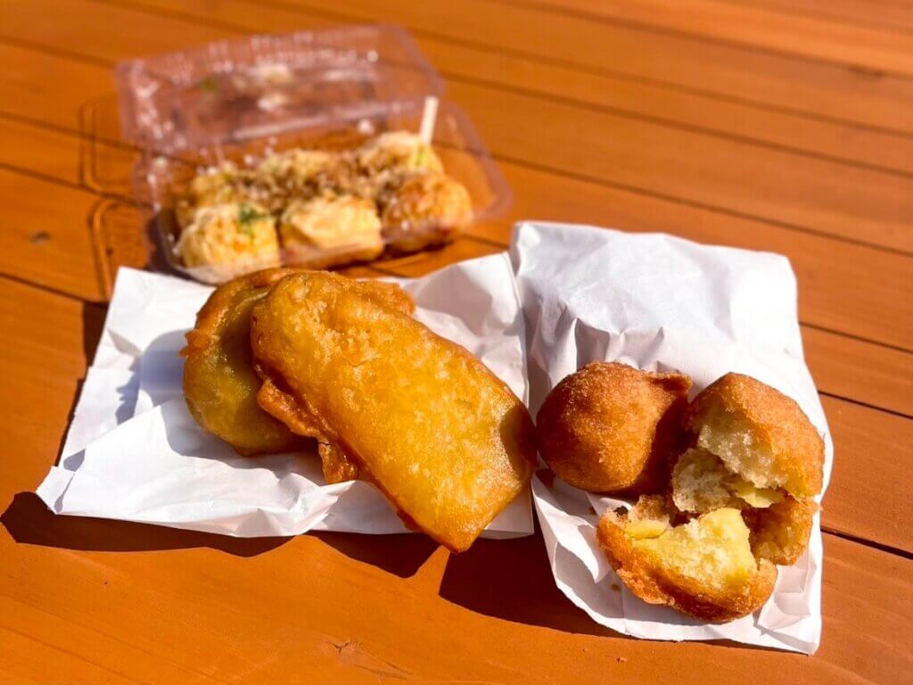 たこ焼きや唐揚げの軽食もあり、おやつにもおすすめです。