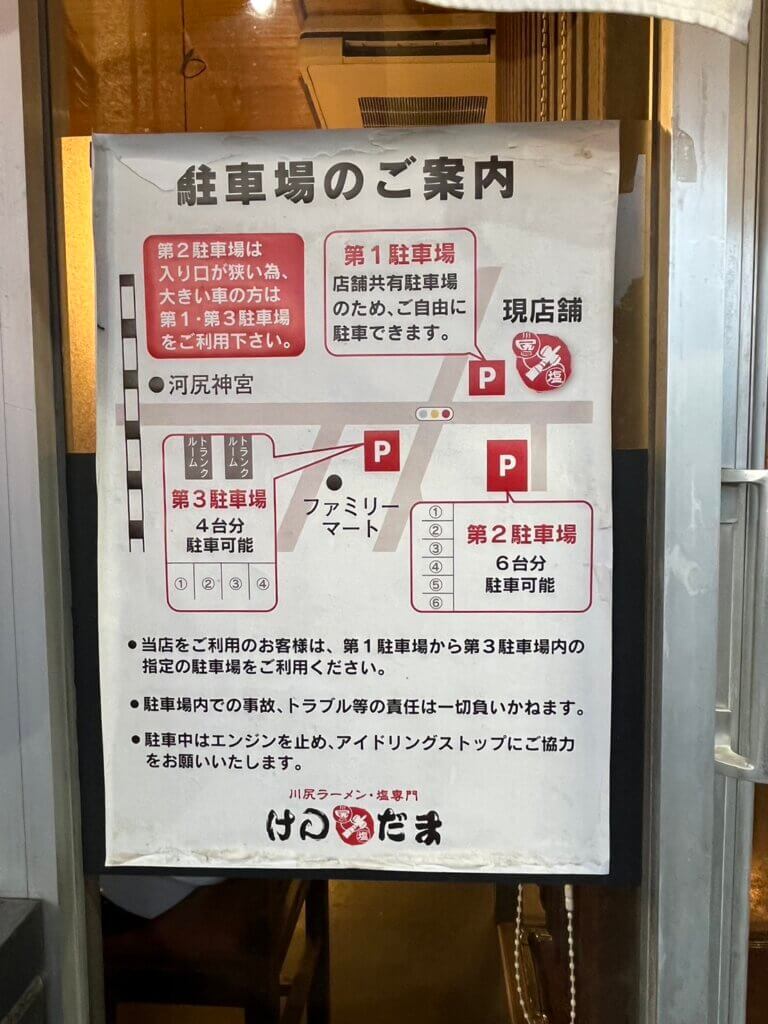 駐車場はお店の前と、すぐそばに第二駐車場、道向かいに第三駐車場まであります。