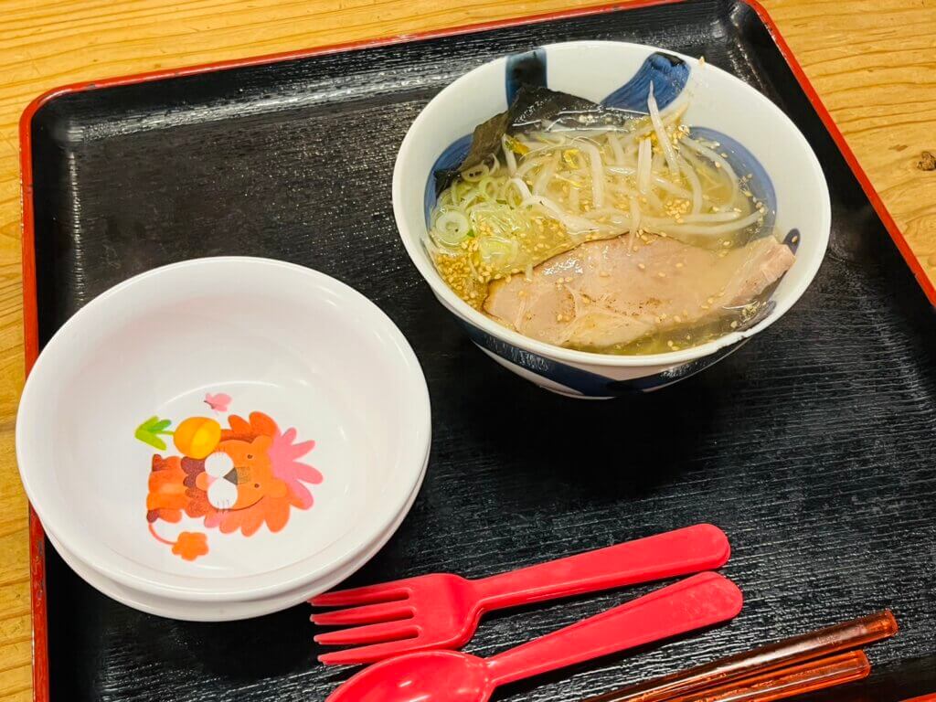 お子さまプレートのスープに+100円(税込110円)で、1/2の麺を入れることができます。