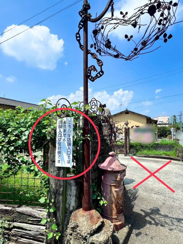 最初に紹介した駐車場の右奥はお店への入り口ではありません。