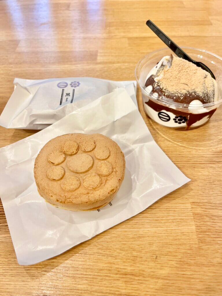 妙見まんじゅう黒、白と、妙見ソフトチョコきなこを注文。