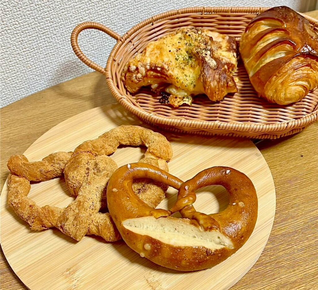 きなこシュガーブレッツェル、ブレッツェル、シュペック!!、パン・オ・ショコラ、りんごカレーパンを買ってきました♪