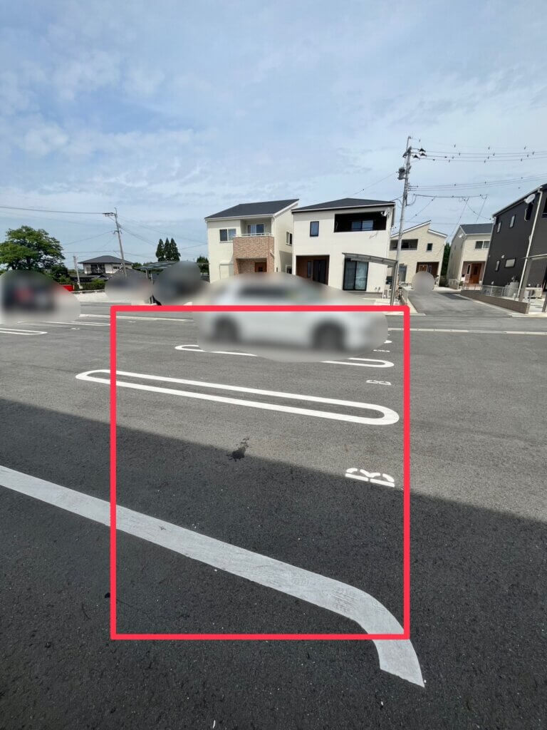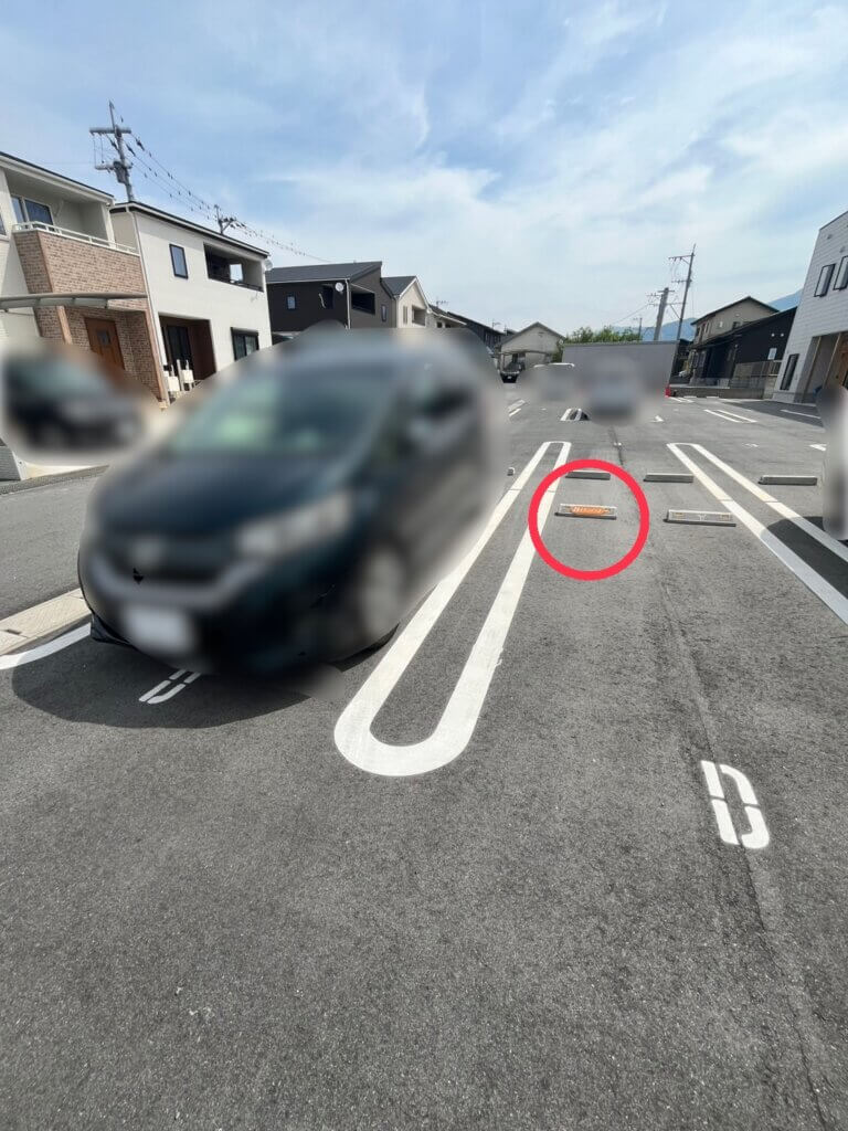 お店の名前が入った印付きの車止めがあるところは駐車可能です。