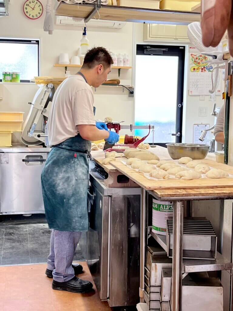 フロアからは厨房が見えるので、店主さんがパンを作る姿を見ることができます。(撮影許可はいただいております。)
