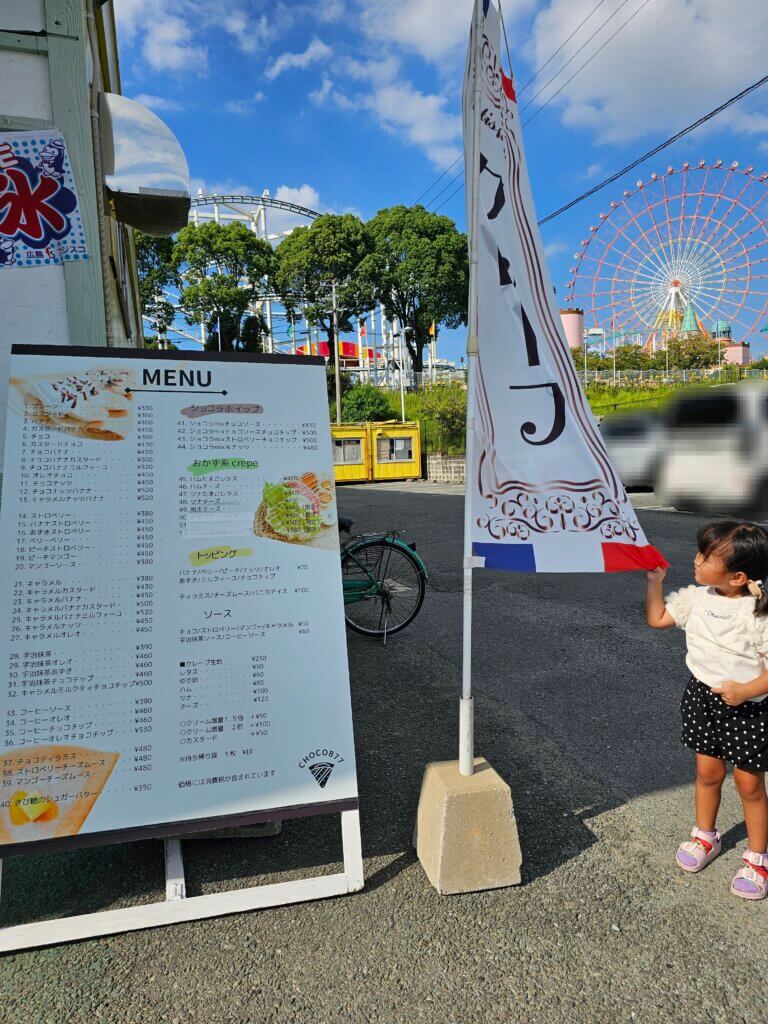 後ろには観覧車!グリーンランドのお隣?ってほどの近さにあるクレープ屋さんです(^^)