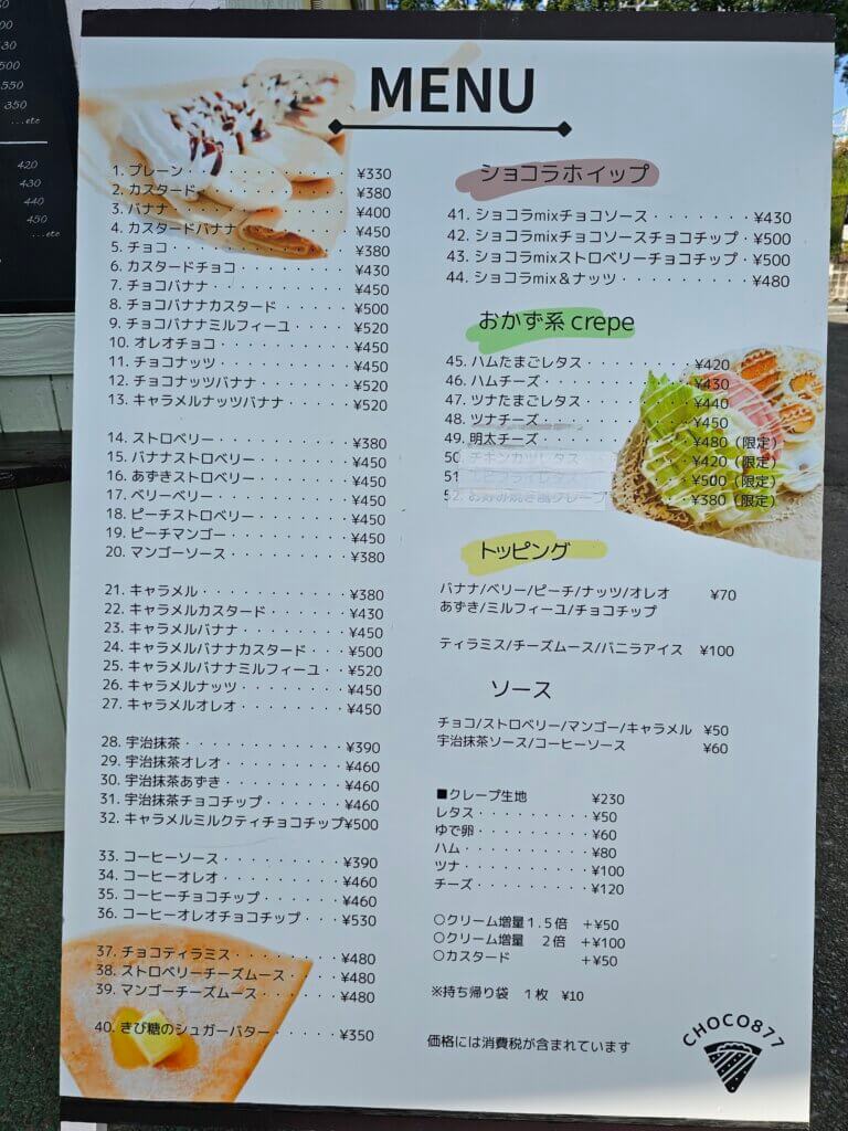 ‘クレープショップチョコ877(バナナ)’のメニューがこちらぁ~(^3^)/