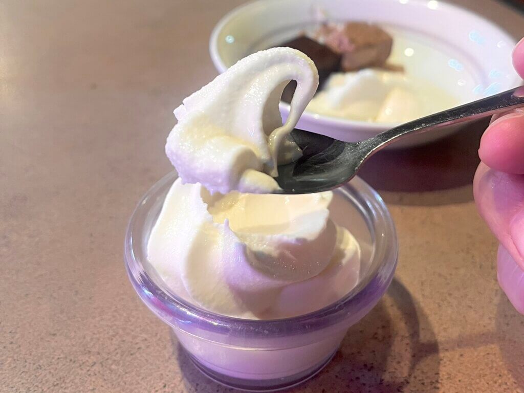 フルーツもあったんですが、せっかくなのでケーキとソフトクリーム、パンナコッタをチョイス。