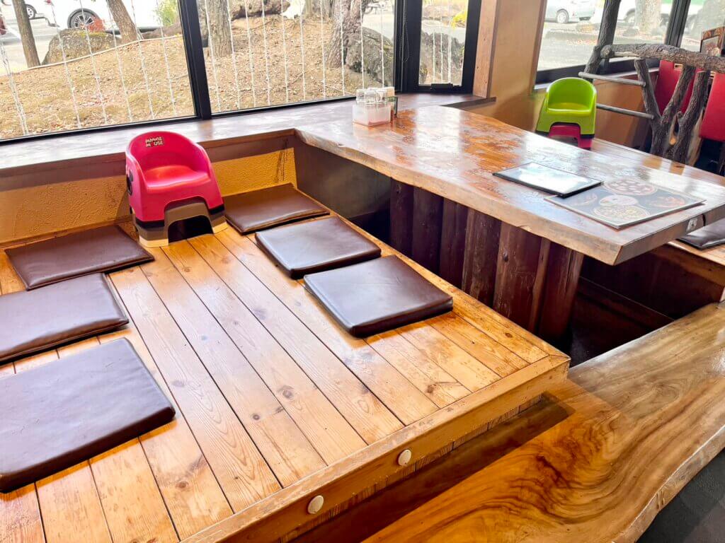 座敷席もあり、小さなお子さん連れも安心の子どもイスもあります。