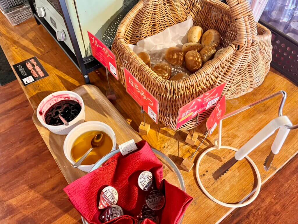 ブルーベリー、はちみつ、マーガリン、さらにトースターもあるとは凄すぎる!