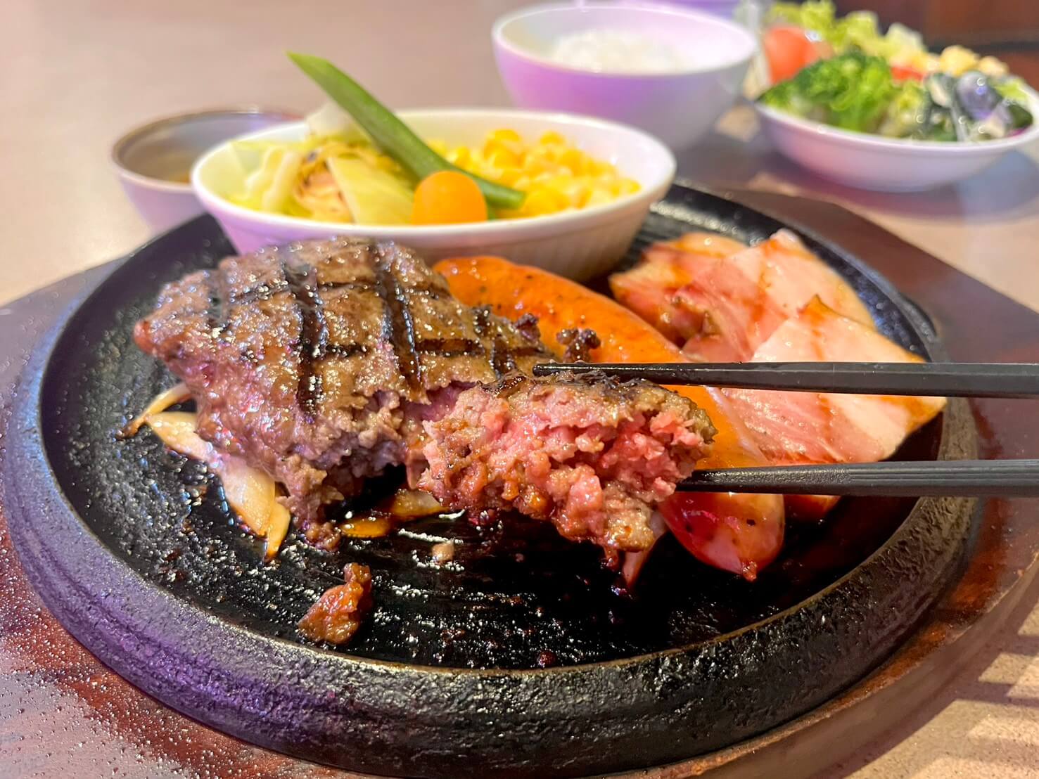 【ハンバーグマン】木曜日はハンバーグマンへいこう。肉の塊のようなジューシーハンバーグが食べ放題。