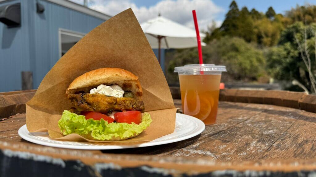 農園カフェマイトリーでは自家栽培米のカレーが提供されていますが、こちらではボリューミーなハンバーガーと焼きたてクレープが味わえますよ。