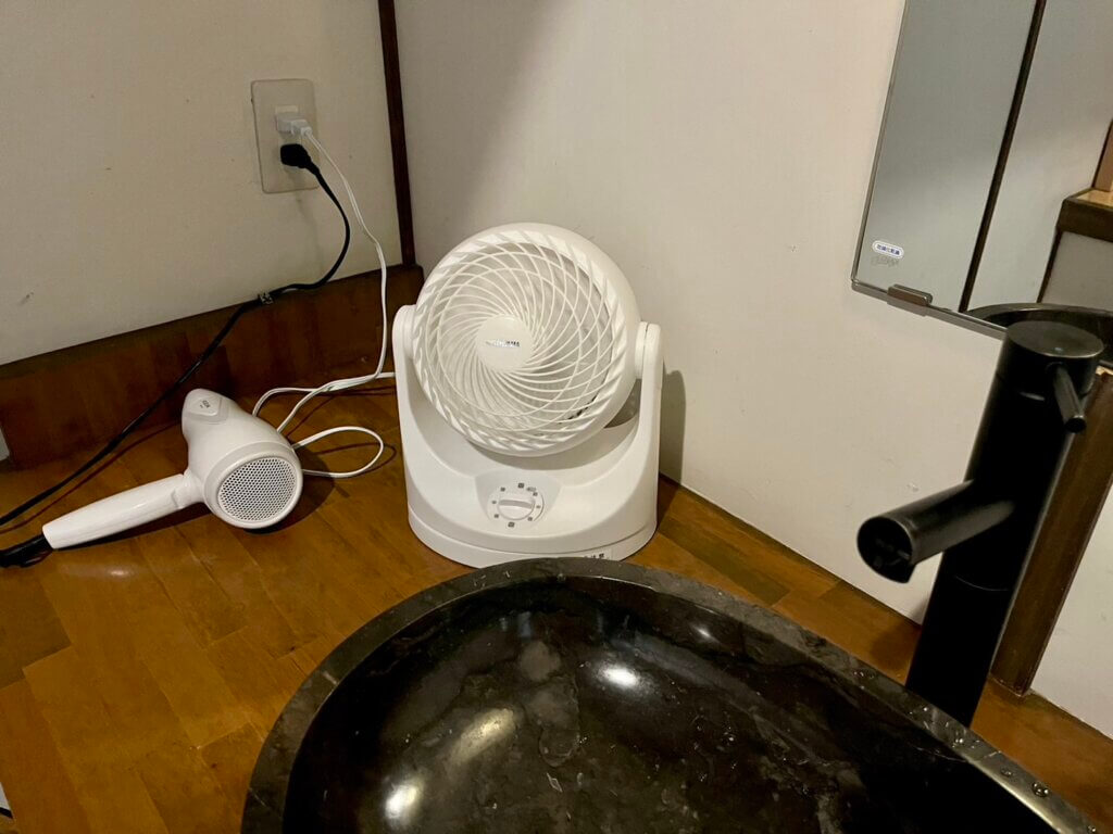 ガンガン冷えているわけじゃないので、このサーキュレーターが嬉しい!家族でも、恋人同士でも♪