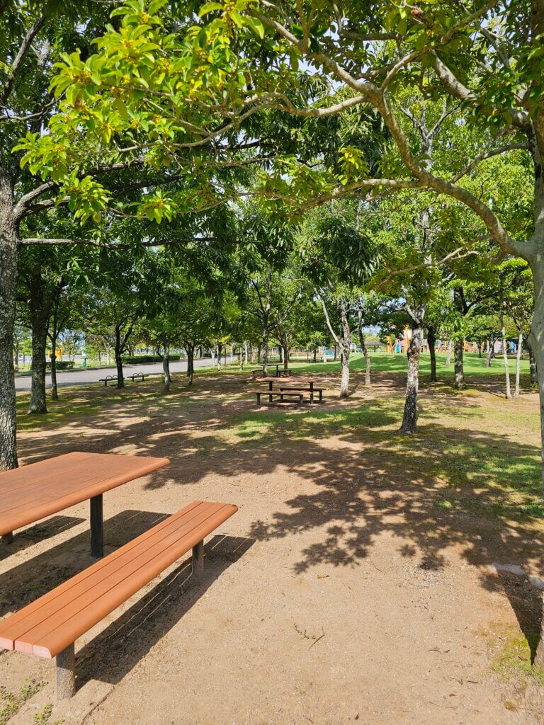 駐車場から遊具がある広場に辿り着く間もテーブル&ベンチがたくさんあり、レジャーシートなしでも過ごせそうでした!