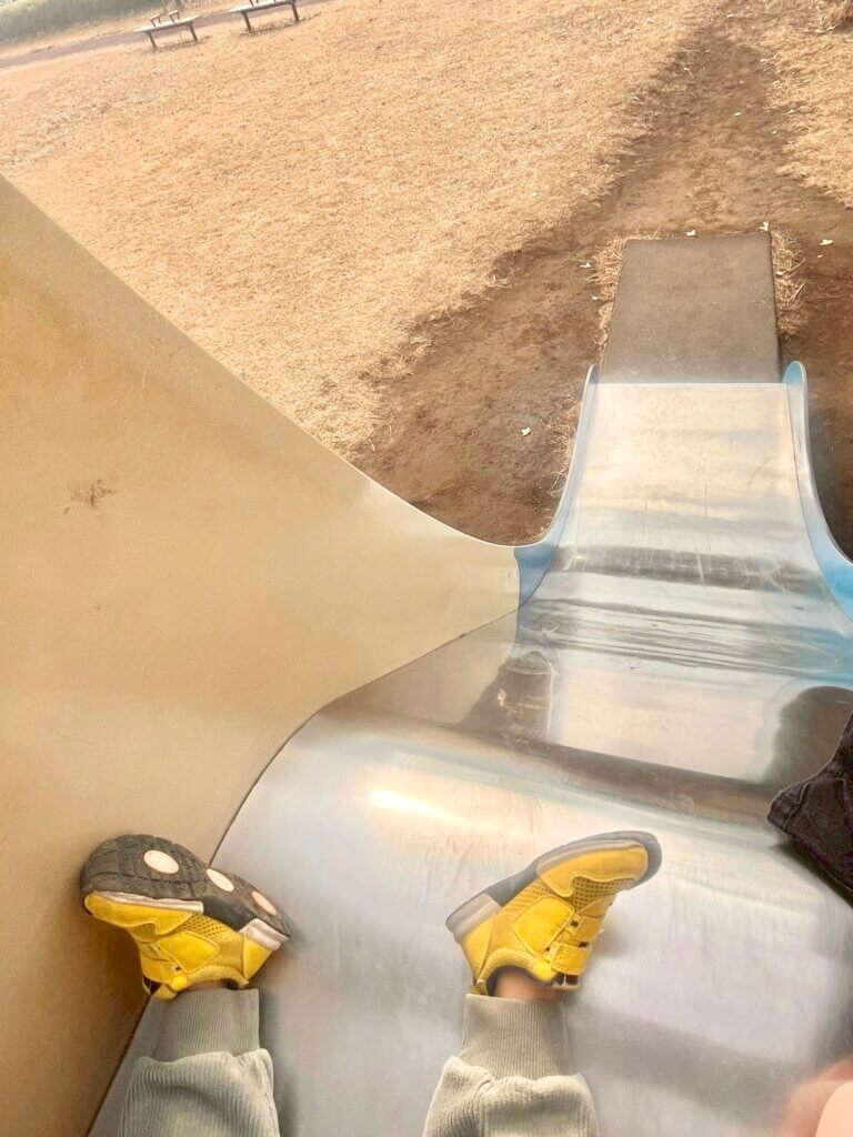 滑り台の傾斜が結構急なんです。