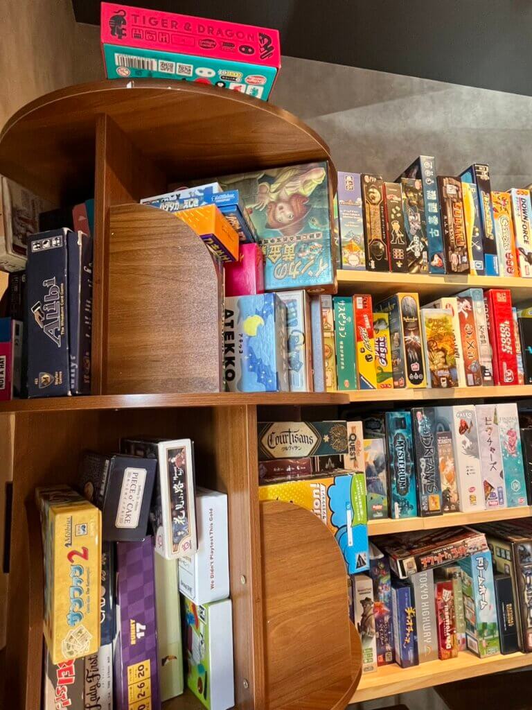 壁やカウンターの上まで、たくさんのボードゲーム!