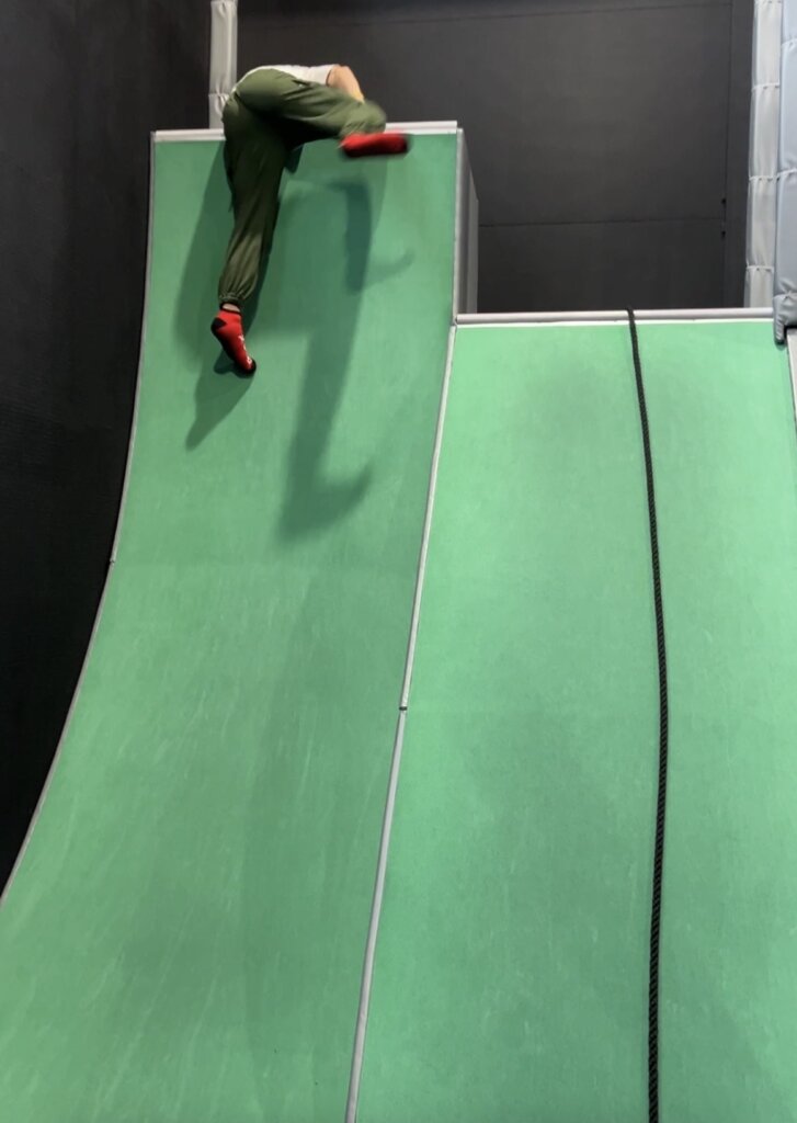 1番上まで登ったら、勇気を持って足を外し、そのまま降りることができますよ。
