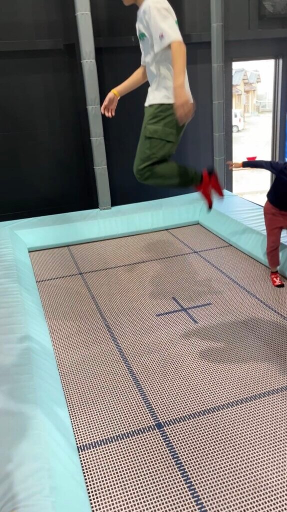 トランポリンバスケはなかなかシュートが難しいけど、コツを掴むとはいるように!