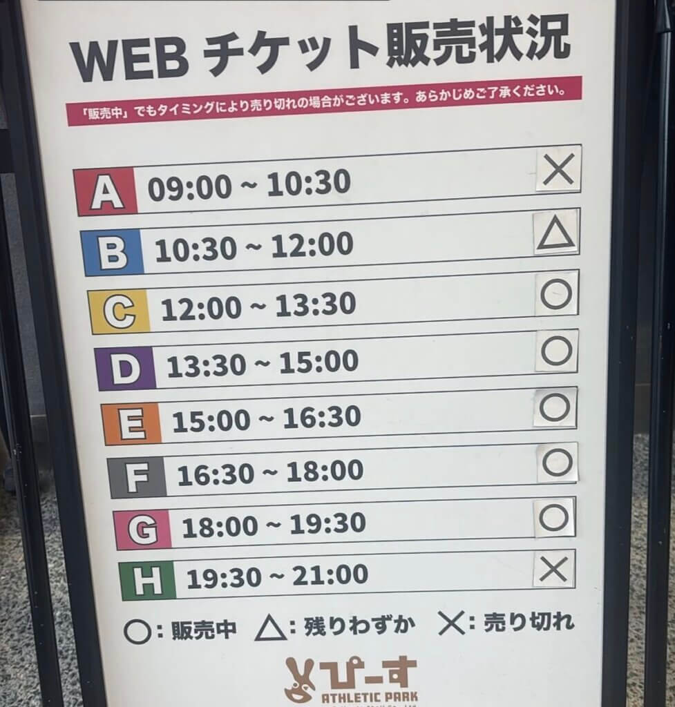 入り口の方に向かうと、チケット販売状況が表示されています。
