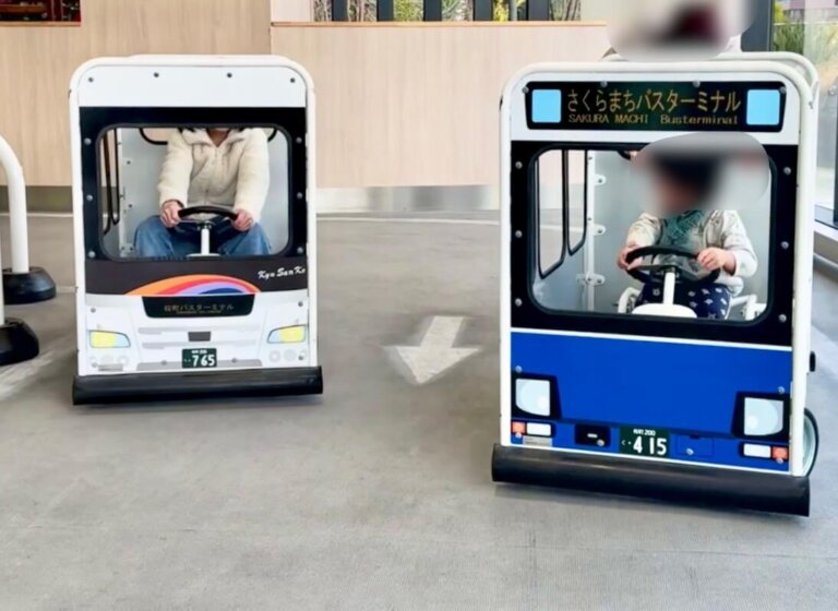 【あそびパークPLUS サクラマチクマモト店-熊本市中央区桜町(サクラマチクマモト内)-】全天候OK!産交バスとコラボしたここだけの遊具もあるよ♪サクラマチへお出かけが楽しくなる遊びスポット!