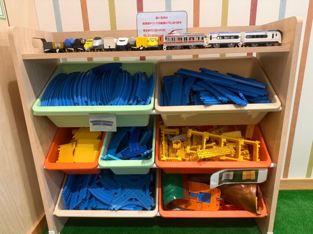 体をたくさん動かした後は座ってゆっくりプラレール^^