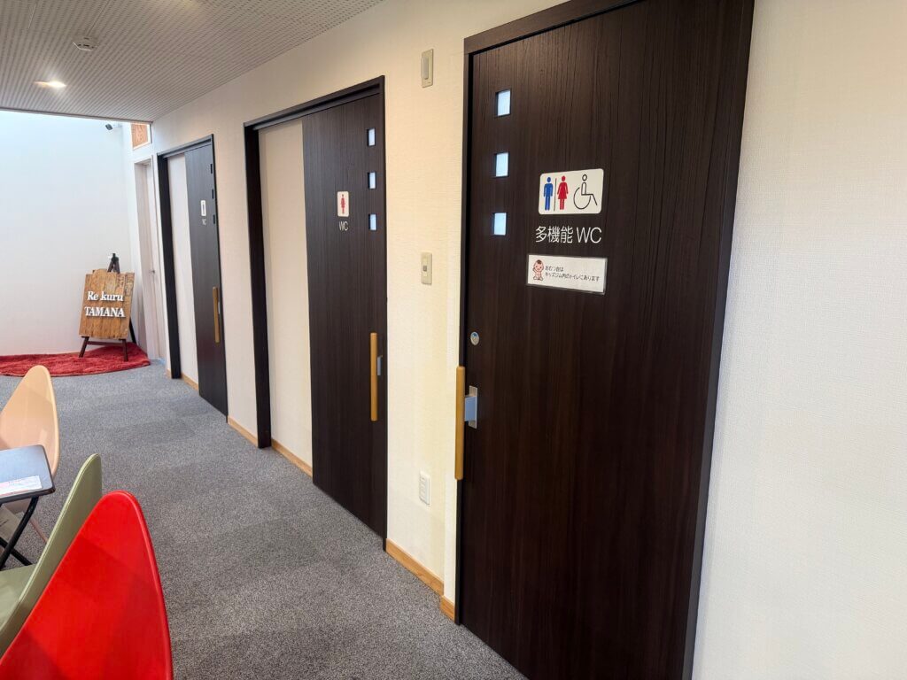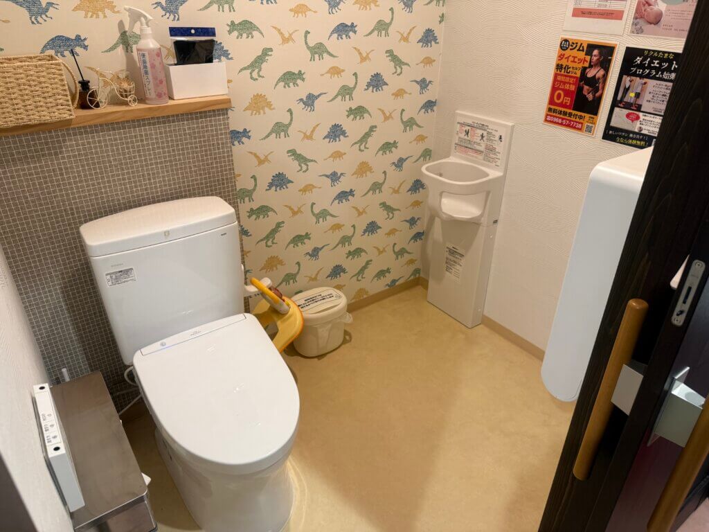おむつ替えスペースに、赤ちゃんの椅子、補助便座まで…至れり尽くせりとはこのこと。