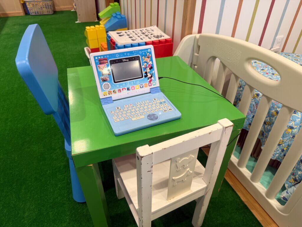 カーテンをめくるとキッズスペースが覗けるようになっています!