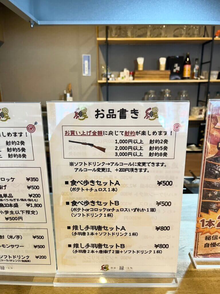射的や駄菓子詰め放題、手羽先や焼き鳥、ポテト、チュロスなどグルメも充実。