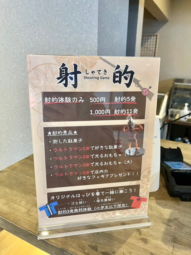 射的体験メニューはこちら。