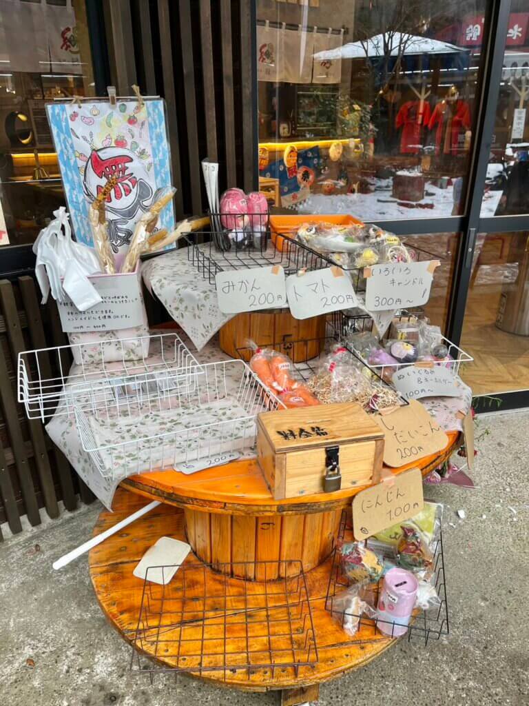 お店の外には、野菜や雑貨の販売コーナー。