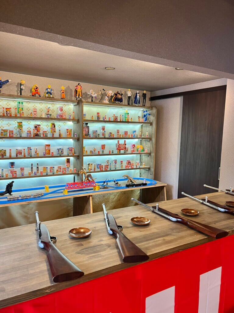 反対側には、思わずテンションが上がってしまう射的!