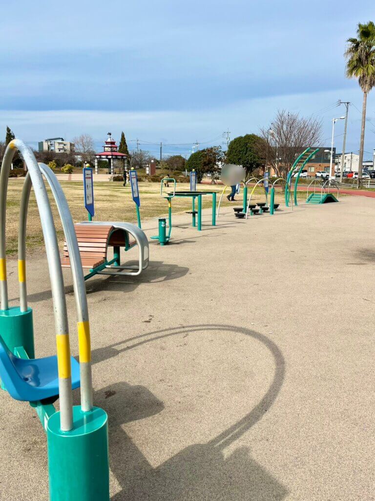 小さい子用の遊具や、健康器具もあり、家族みんなで遊んで体を動かせますよ。