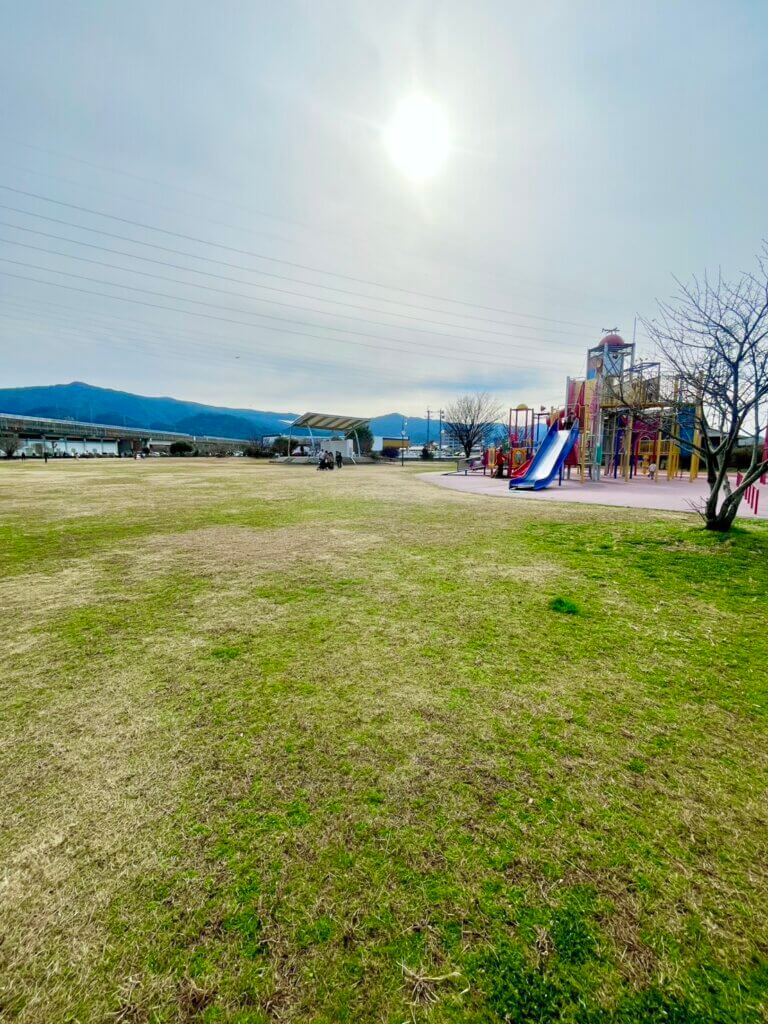 電車でお出かけにもぴったりな、新八代駅のすぐ目の前にある広い公園!