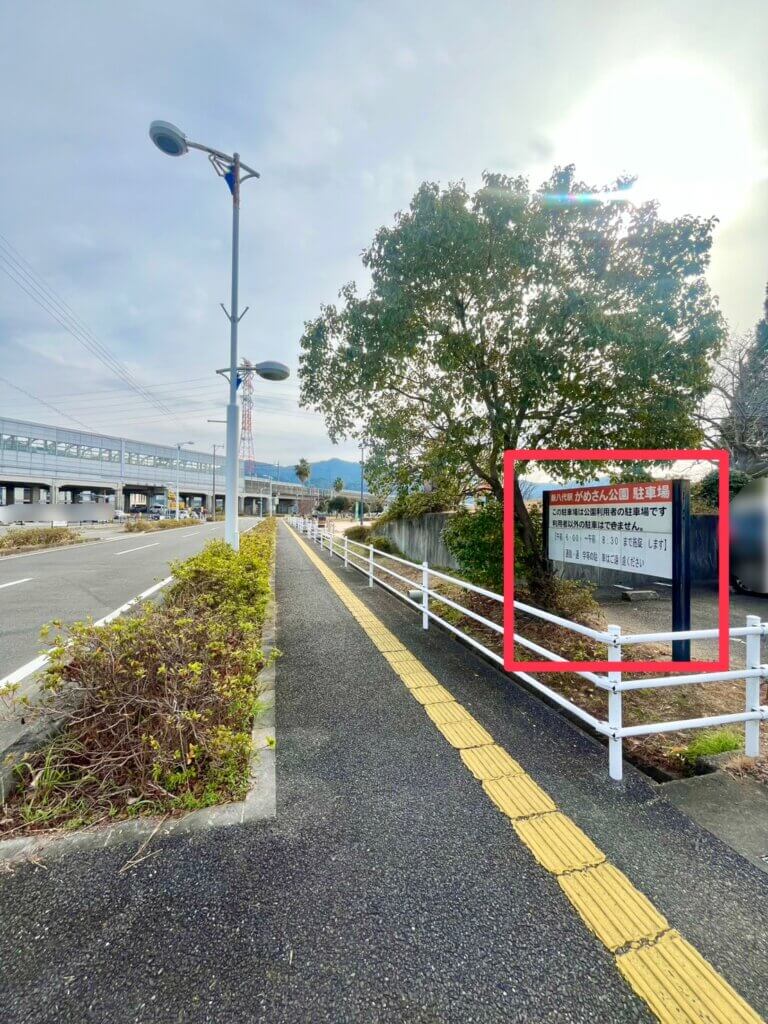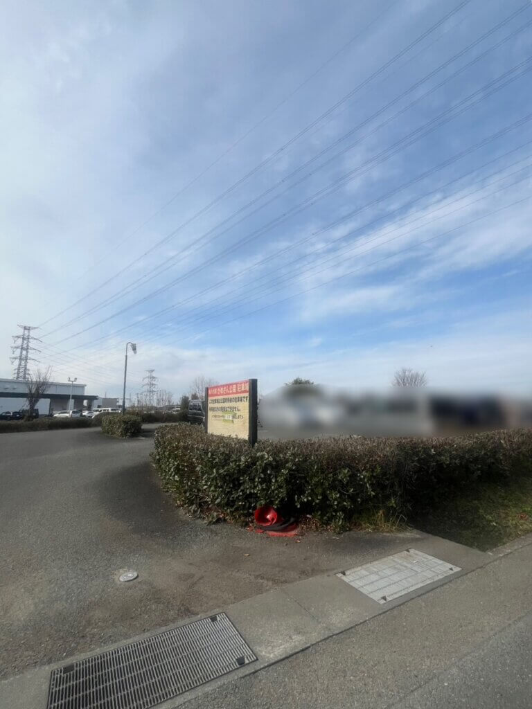私たちは写真中央の奥(1つめの駐車場の前を通って)から来たのですが、ちょうど駐車場の看板が木に隠れていて1度通り過ぎました。笑