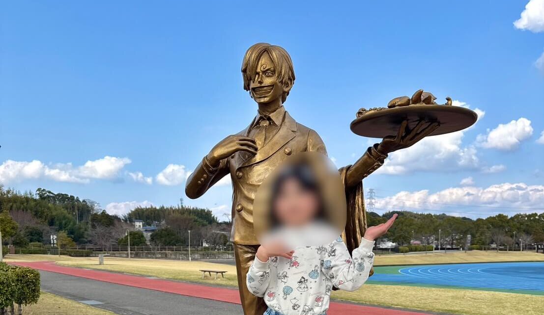 ワンピースのサンジ像がある、益城町総合運動公園。