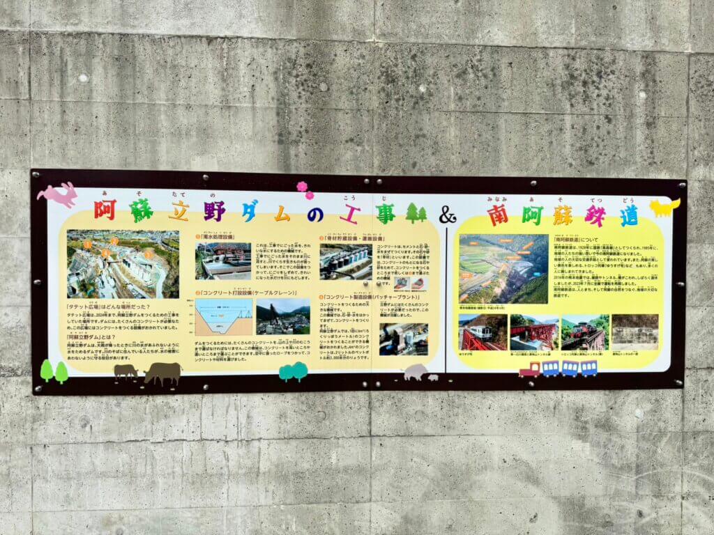 トロッコ列車がある複合遊具の下には、立野ダムの工事の様子やダムについての展示がありました。