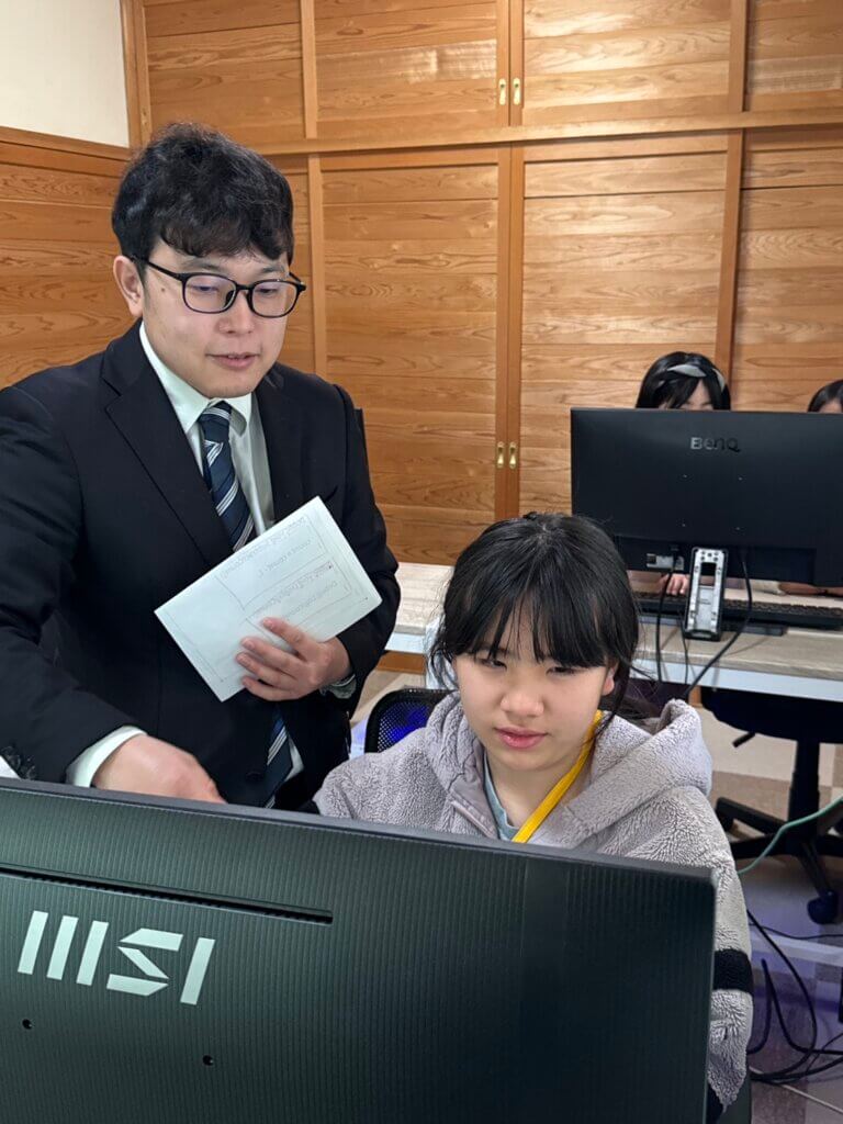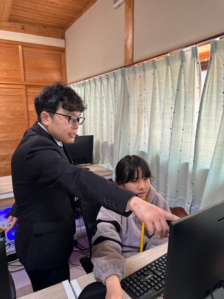 自分で進めていくため、先生は前に立って教えるのではなく、生徒の後ろからサポートするスタイル。