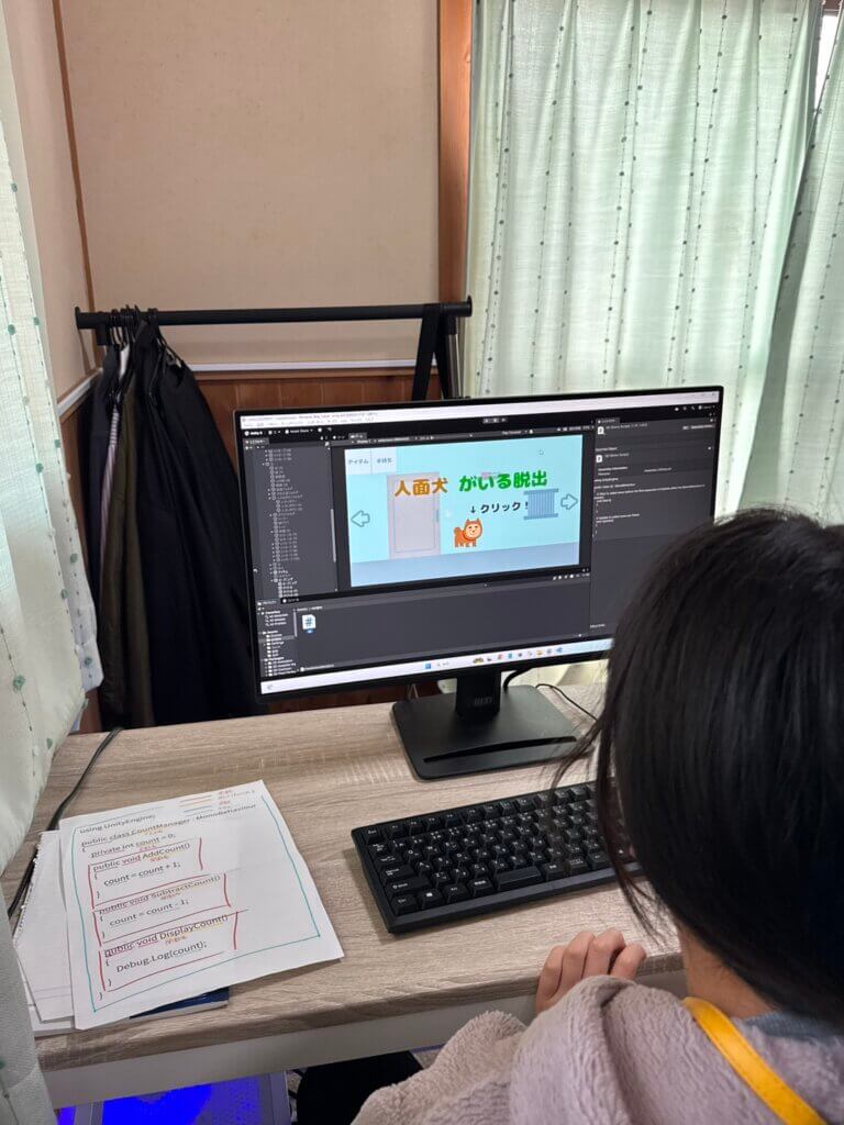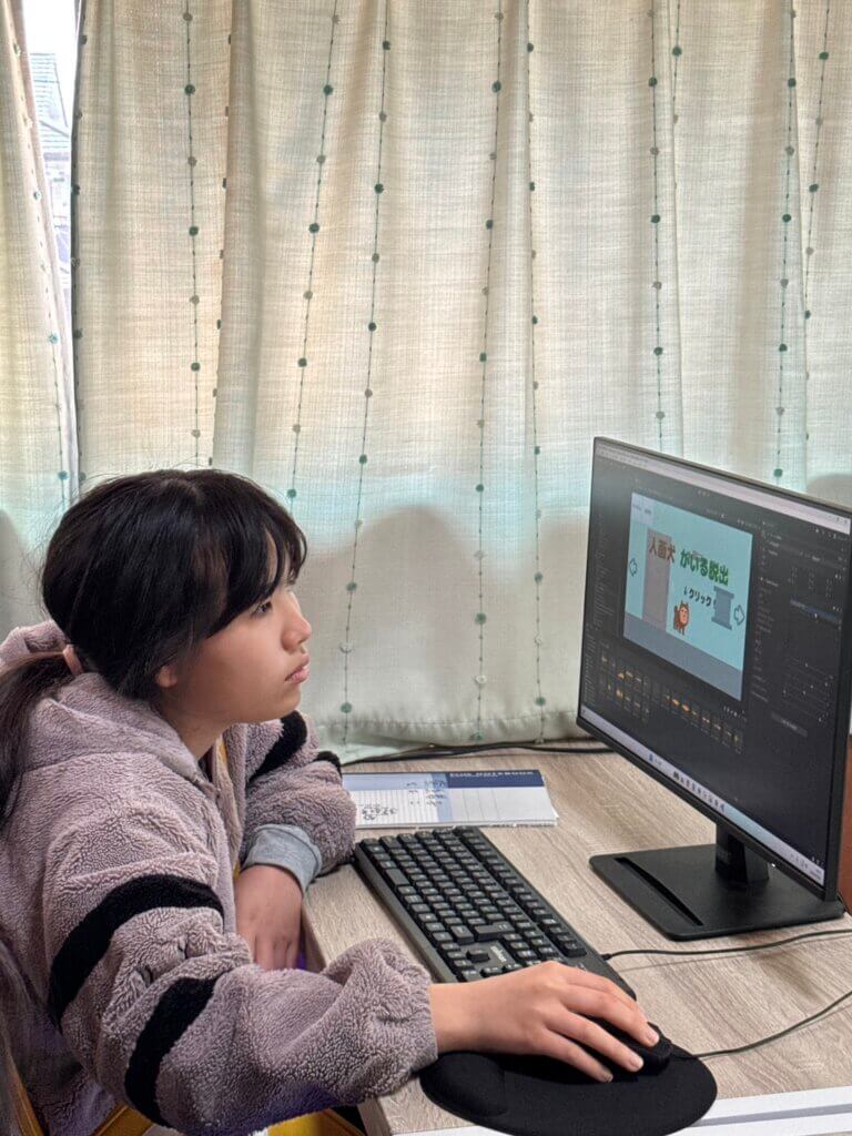 最初はパソコン操作に慣れるところからスタートした子も、少しずつステップアップして自分のゲームを形にできるように。
