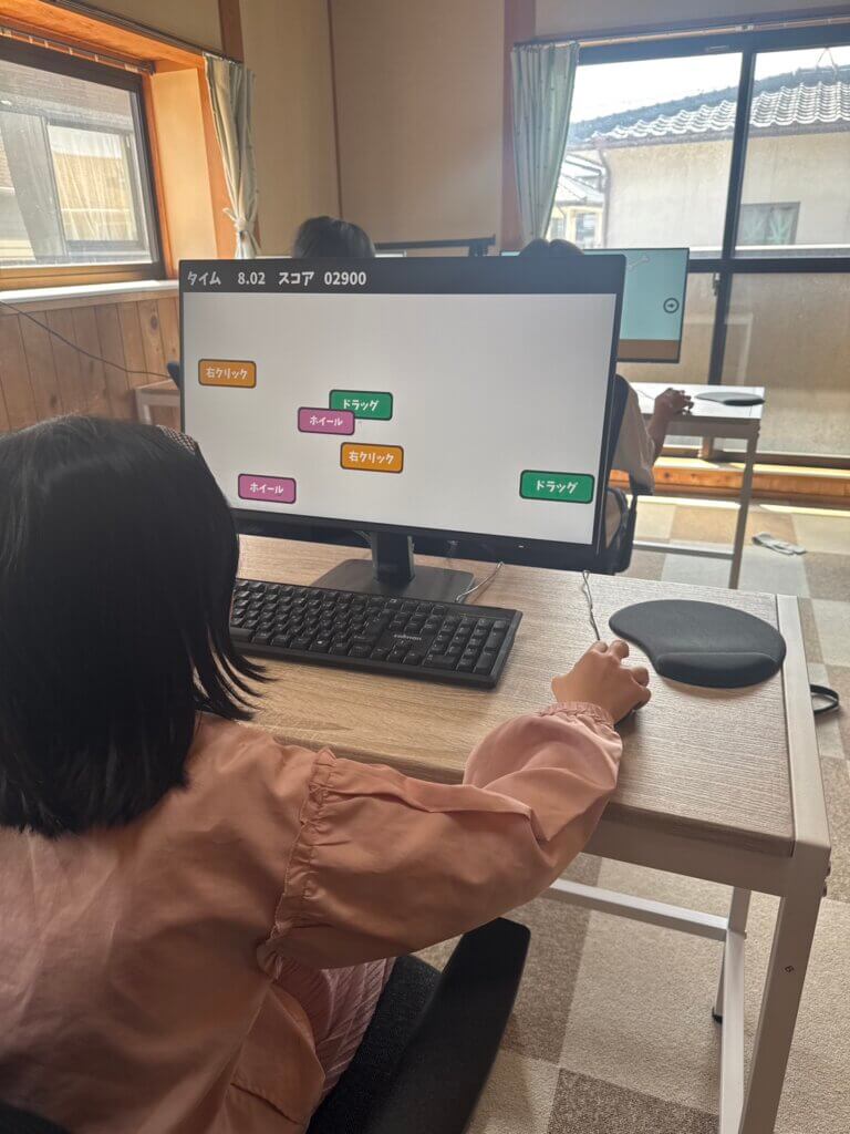 プログラミング教室たけみやではゲーム制作を通してプログラミングを学んでいきますが、初心者はマウス操作やタイピング練習からスタート。